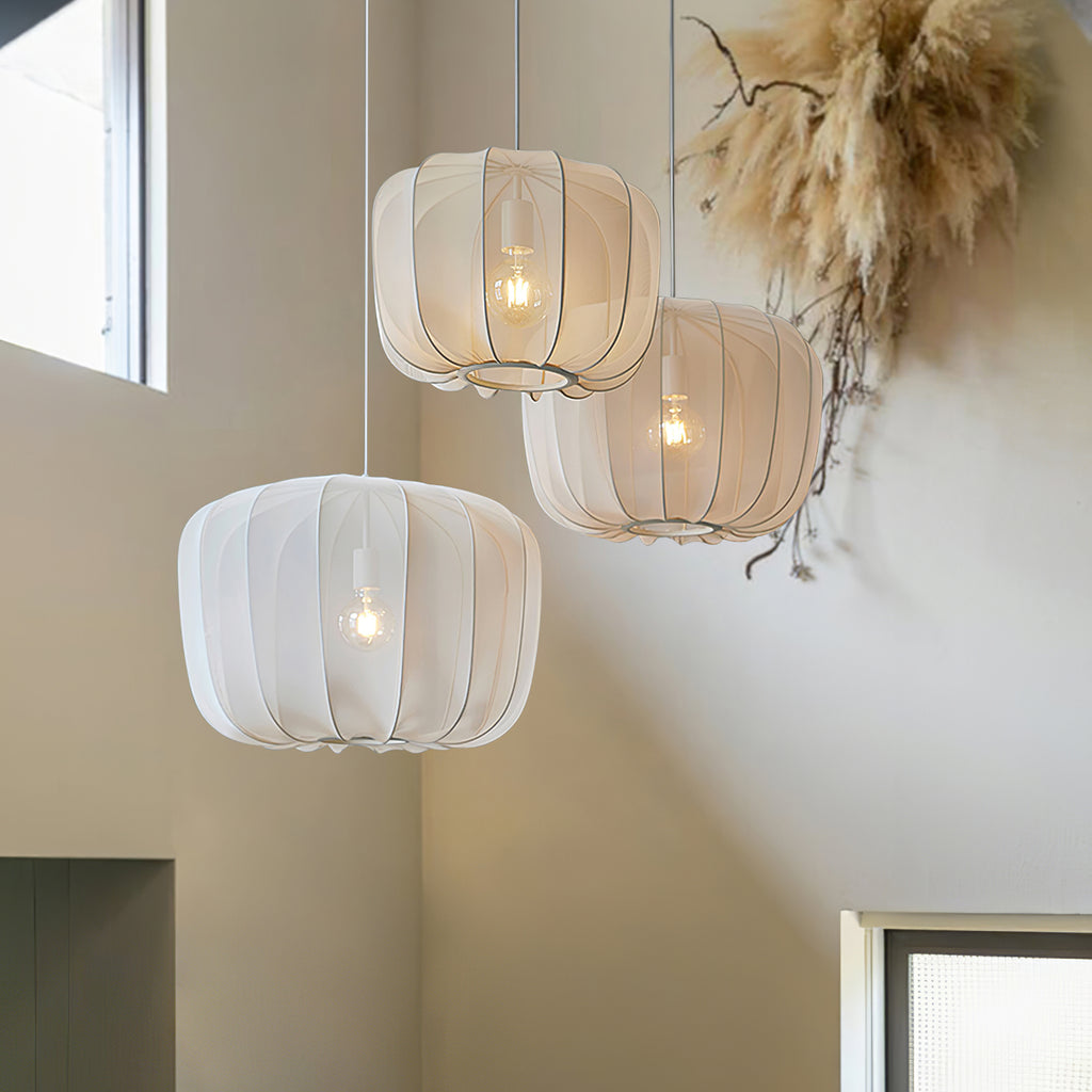 Warm and Inviting: The Fabric Pendant Lamp enhances dining experiences with its warm, focused lighting, making meals feel more intimate and special. Its pendant design beautifully accentuates the dining table, enhancing the overall ambiance.